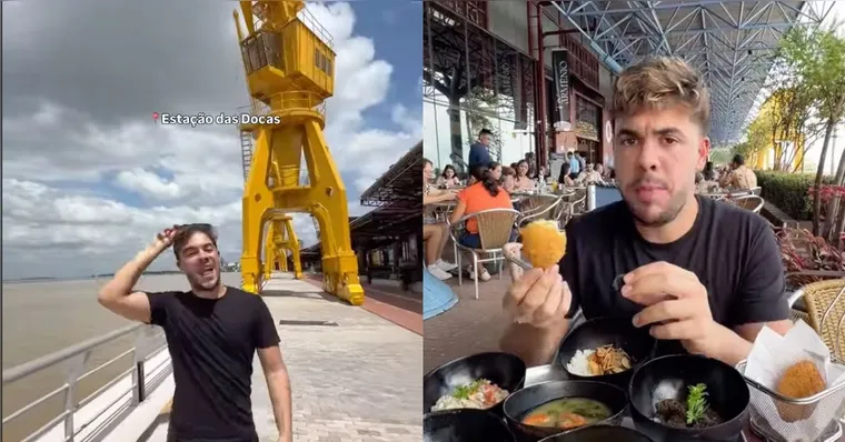 O influenciador digital alagoano Álvaro Xaro está de passagem por Belém e aproveitou para conhecer um dos pontos turísticos mais visitados da cidade: a Estação das Docas. Na ocasião, o famoso aproveitou para passear no local e ao som da música "Voando pro Pará", da cantora Joelma, degustou os pratos típicos do Pará.