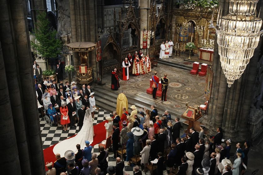 1/10A família real senta do lado direito da igreja. Quando o noivo não é da realeza, eles sentam no lado esquerdoGetty Images