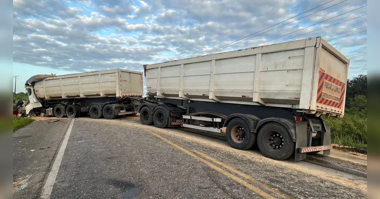 O acidente ocorreu no km 129 da BR-316, próximo ao supermercado Mateus. O motorista de um rodotrem colidiu na traseira de uma caçamba após perder o controle do veículo. Com o impacto, a caçamba tombou fora do leito carroçável e o rodotrem ficou atravessado nos dois sentidos da pista, segundo a Polícia Rodoviária Federal (PRF).