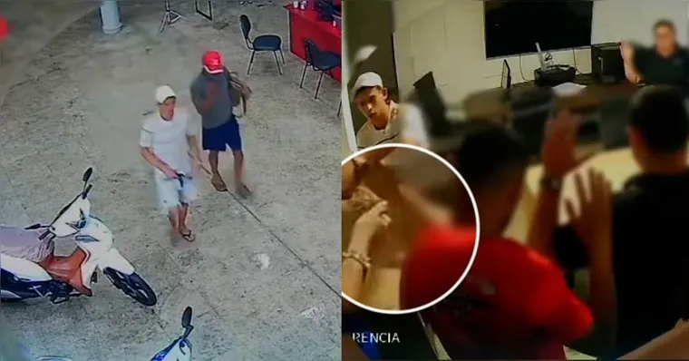 Imagens de câmeras de segurança do estabelecimento mostram o momento em que dois criminosos chegam ao local e rendem os funcionários. Nas gravações, é possível ver que os suspeitos entram com aparente tranquilidade, mas rapidamente anunciam o assalto.