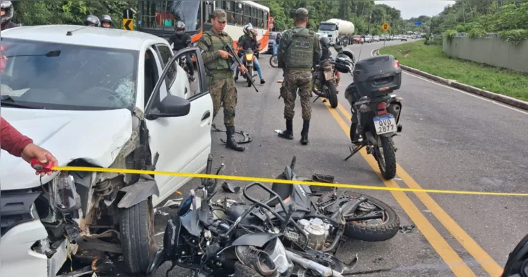 De acordo com informações apuradas no local, a colisão envolveu um carro e uma motocicleta e provocou grande congestionamento nos dois sentidos da rodovia, impactando diretamente o fluxo de veículos em um dos principais corredores viários da capital. Motoristas enfrentaram lentidão enquanto equipes atuavam no atendimento da ocorrência e na liberação da pista.