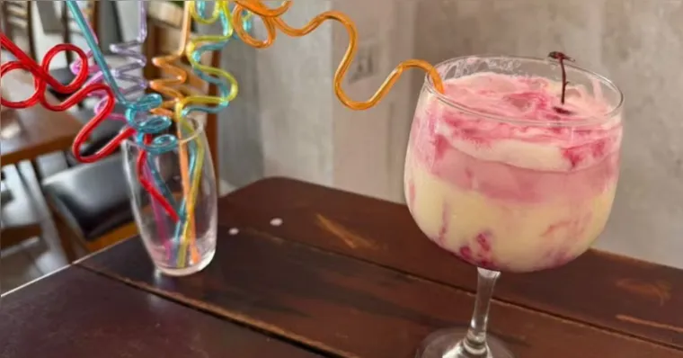 A bebida combina suco de abacaxi, leite condensado e sorvete, com finalização de groselha e cereja.
