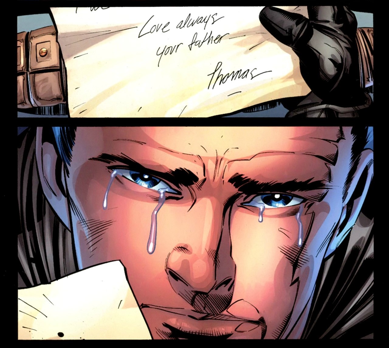 A morte de seus pais foi o gatilho para que Bruce Wayne optasse por seguir o caminho da justiça. Filho único, ele não conseguiu encontrar consolação em nada e nem ninguém, vivendo sozinho (além do Alfred, claro) em um mansão, Bruce nunca foi capaz de superar o falecimento de Thomas e Martha Wayne, sendo este um assunto explorado em quase todas as suas histórias. Por isso, quando o Ponto de Ignição acontece e Flash volta de uma realidade paralela trazendo para Bruce uma carta de seu pai, nem mesmo o Cavaleiro das Trevas consegue segurar suas lágrimas. Este é um item que Batman guarda com bastante carinho.